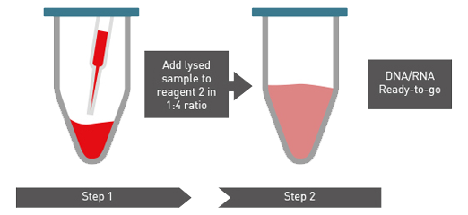Pada tahapan pertama larutan Arcis akan membuat sel terbuka sehingga materi genetik terlepas, sesuai dengan nama tahapannya, terjadi porses lisis. Tahapan kedua dimana larutan berisi sampel pada tabung pertama bercampur dengan larutan tabung kedua, dalam tabung kedua ini materi genetik berelaksasi dan seolah tercuci, sehingga siap untuk dipakai dalam analisis selanjutnya. Materi genetic pada tabung kedua dapat langsung digunakan. Hasil isolasi tersebut sudah dapat digunakan untuk tahapan PCR dan qPCR.