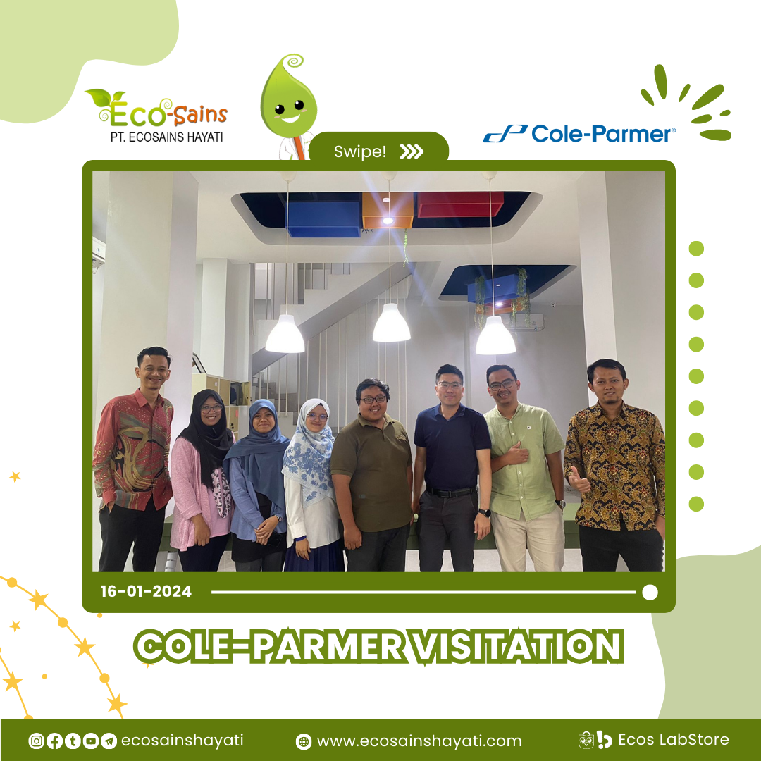 Pada tanggal 16 Januari 2024, PT Ecosains Hayati menyambut kedatangan tim dari Cole Parmer dalam rangka kunjungan kerja yang bertujuan untuk mempererat hubungan kerja sama antara kedua belah pihak. PT Ecosains Hayati merupakan salah satu distributor resmi dari brand Cole-Parmer. Kunjungan ini menjadi momen penting bagi PT Ecosains Hayati dalam memastikan kolaborasi yang sudah terjalin dapat terus berkembang, khususnya dalam pengembangan teknologi laboratorium di Indonesia. Sebagai distributor resmi produk Cole Parmer, PT Ecosains Hayati berkomitmen untuk menghadirkan solusi terbaik di bidang peralatan laboratorium, terutama di sektor life science dan teknologi kesehatan.