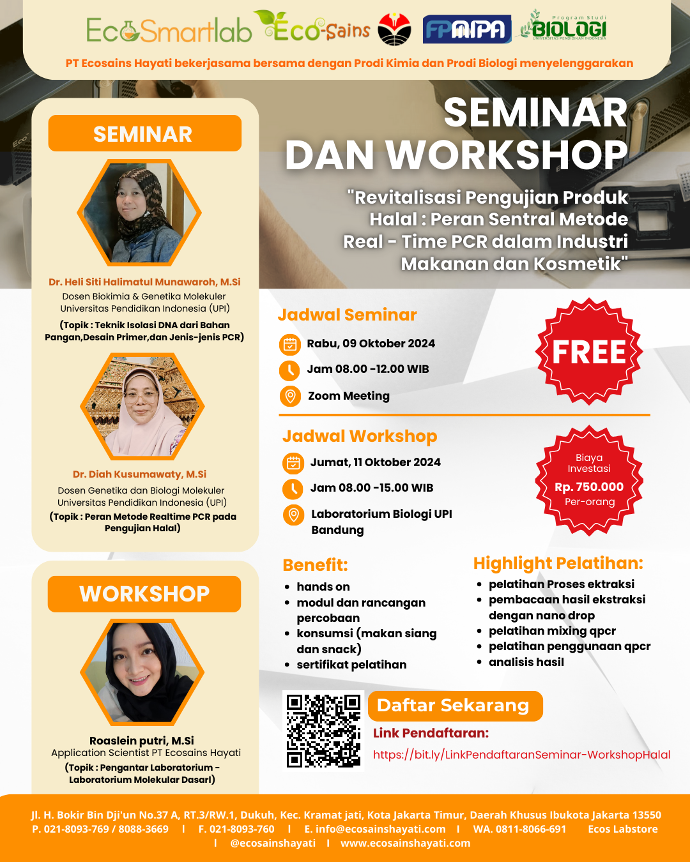 "Seminar & Workshop "Revitalisasi Pengujian Produk Halal : Peran Sentral Metode Real-Time PCR dalam Industri Makanan dan Kosmetik"Β